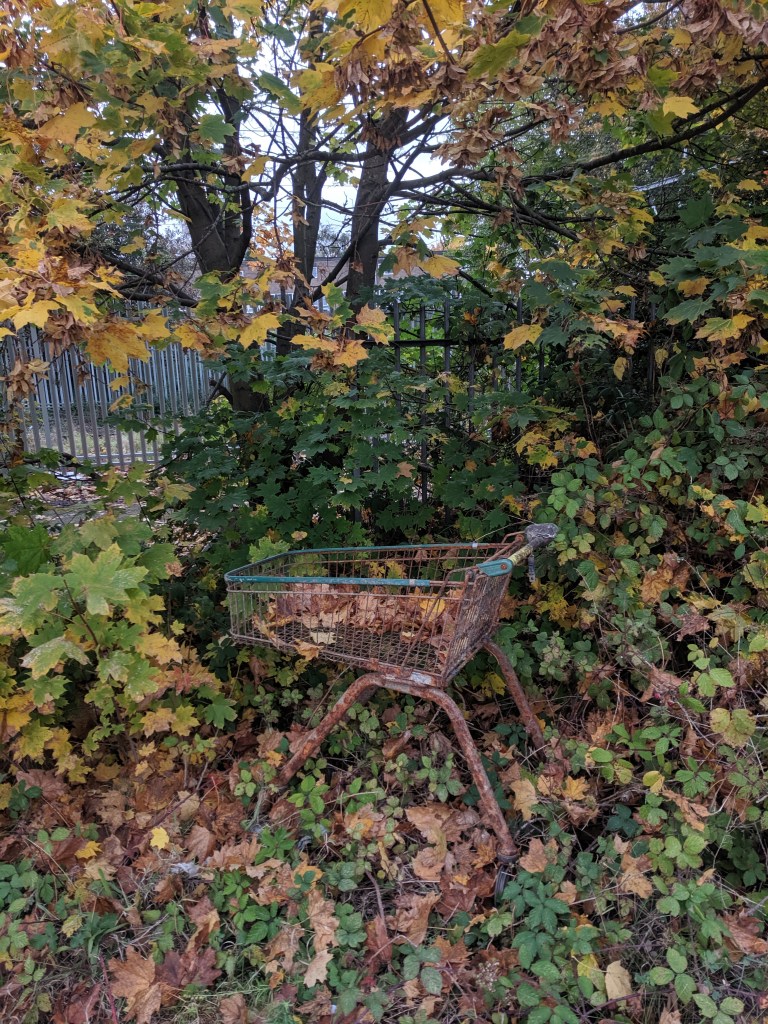 A short walk took us a little way out of the city centre, through a housing estate, into a strange little patch of wilderness I titled ‘the Deadarm’. Centred around a basin branching off from the main canal, it mirrored the city centre gardens in that it was also hemmed in on all sides: to the north, a railway; to the east a busy ringroad; and the canal to the south. But this place was far more overgrown, far less friendly, than the gardens. The grass was knee-height, and strewn with the debris of human habitation (the obligatory fridge, half a mattress, and supermarket trolley left to rust). As we stood there, traffic buzzed around us: train, car, narrowboat and pedestrian. But this space was separate to all that – a place which had an atmosphere all it’s own. I encouraged walkers to see the strange beauty of this place and potential treasures it might offer up, if we were only to look. I read another poem, before announcing ‘the Deadarm’ as the winning entry into the Urban Green Space Awards 2019.